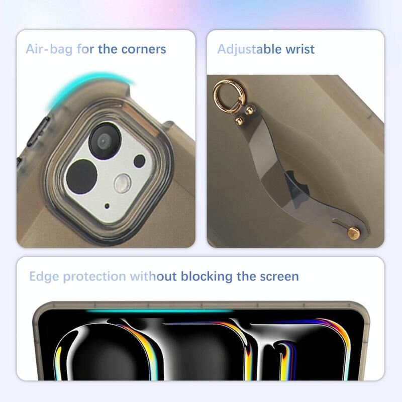 For iPad Pro 13 2024 Wristband Holder PC Hybrid TPU Soft Tablet Case(Black)