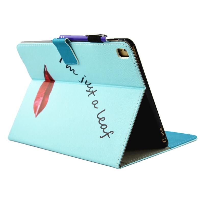 Θήκη δέρματος οριζόντιας αναδίπλωσης για iPad Pro 9.7 ιντσών με σχέδιο χειλιών και φύλλων, με βάση, πορτοφόλι, θήκες καρτών, λειτουργία ύπνου/αφύπνισης και θήκη για στυλό.