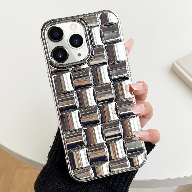 Θήκη τηλεφώνου για iPhone 11 με 3D υφή κυβικής ύφανσης και ηλεκτρολυτική επιμετάλλωση (Μωβ)