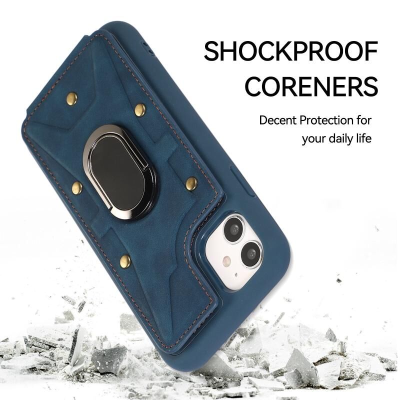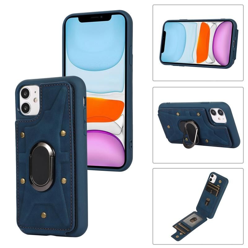 For iPhone 11 Armor Ring Wallet Back Cover Phone Case(Blue)