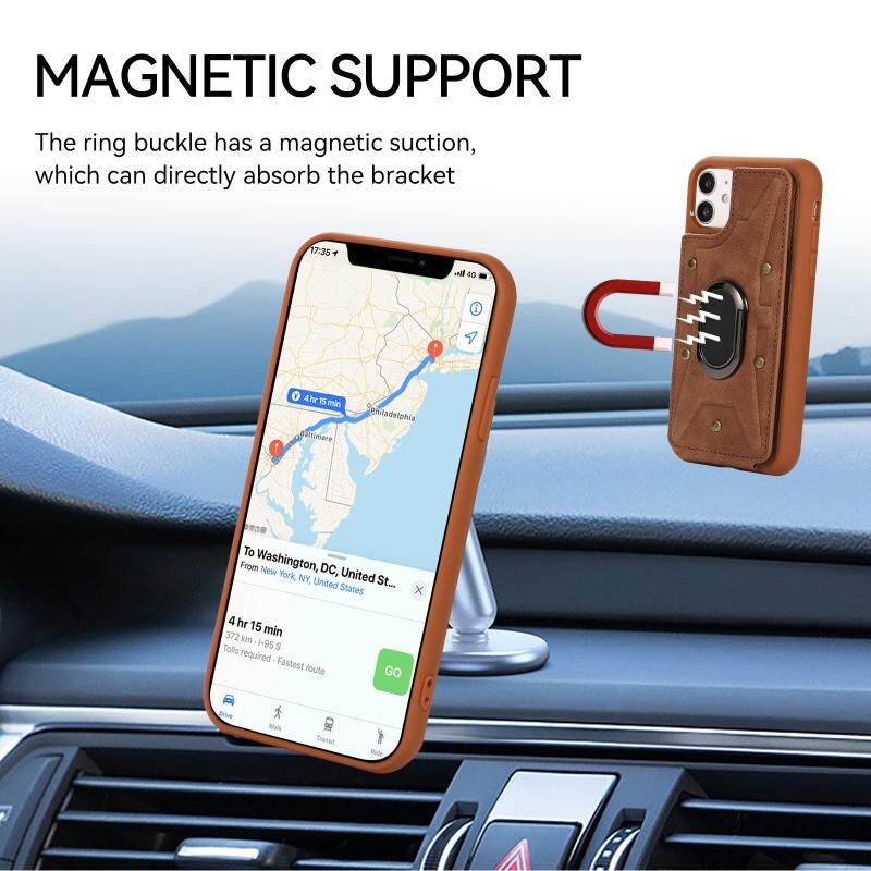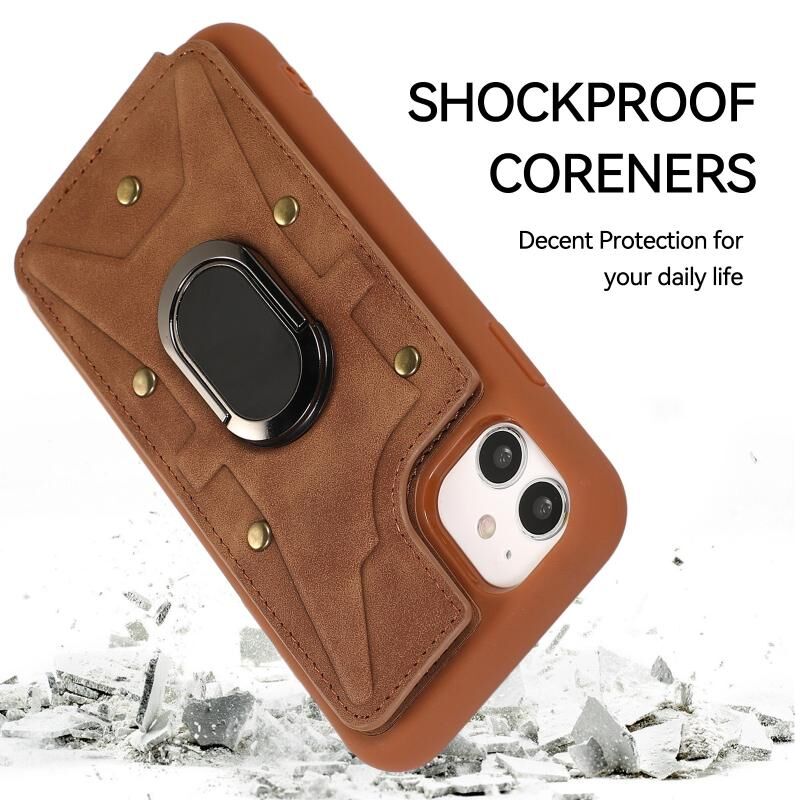 For iPhone 11 Armor Ring Wallet Back Cover Phone Case(Brown)