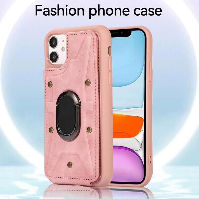 For iPhone 11 Armor Ring Wallet Back Cover Phone Case(Pink)