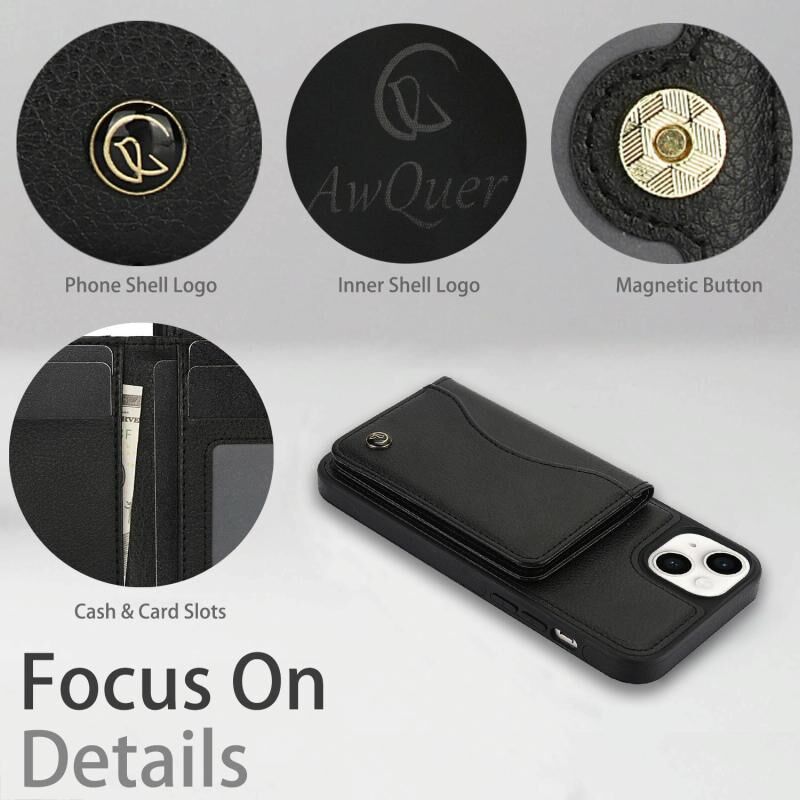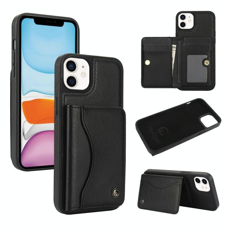 Θήκη τηλεφώνου AwQuer για iPhone 11, οριζόντια, με κάρτες και δερμάτινη κατασκευή (Μαύρο) (Awquer)