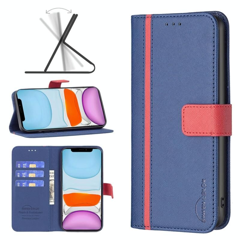 Θήκη τηλεφώνου από δέρμα με ανάγλυφη υφή και αντιστοίχιση χρώματος για iPhone 11 BF13 (Μπλε)