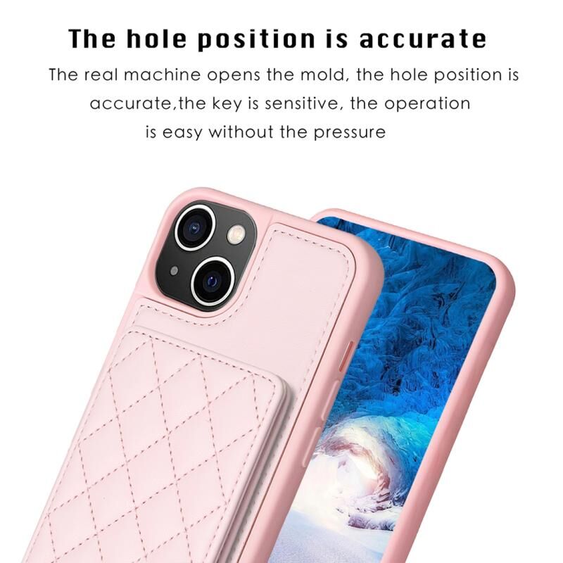 For iPhone 11 BF25 Square Plaid Card Bag Holder Phone Case(Pink)