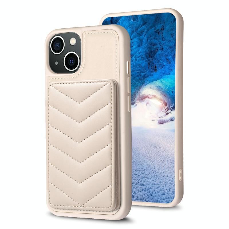 For iPhone 11 BF26 Wave Pattern Card Bag Holder Phone Case(Beige)