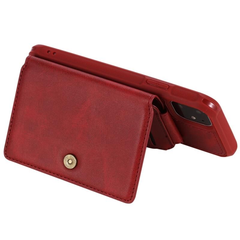 For iPhone 11 Buckle Zipper Shockproof Protective Case with Holder & Card Slots & Wallet & Lanyard & Photos Frames(Red)