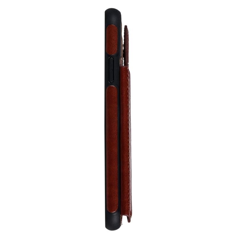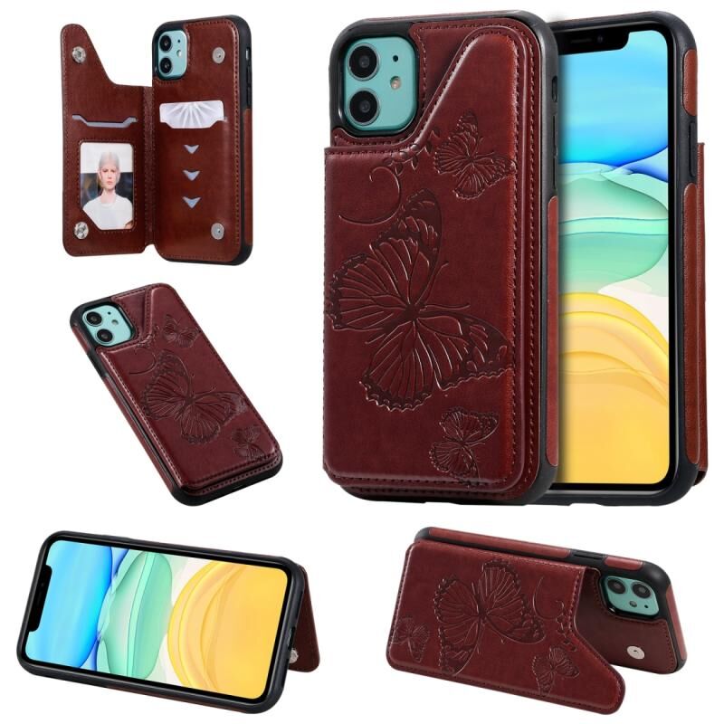 For iPhone 11 Butterfly Embossing Pattern Shockproof Protective Case with Holder & Card Slots & Photo Frame(Brown)