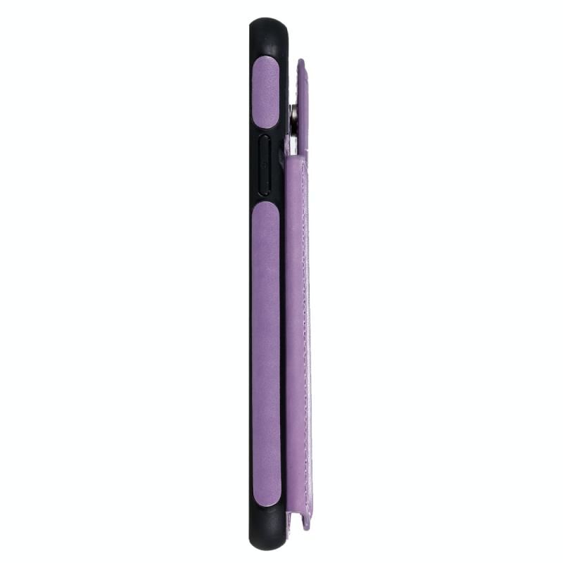 For iPhone 11 Butterfly Embossing Pattern Shockproof Protective Case with Holder & Card Slots & Photo Frame(Purple)