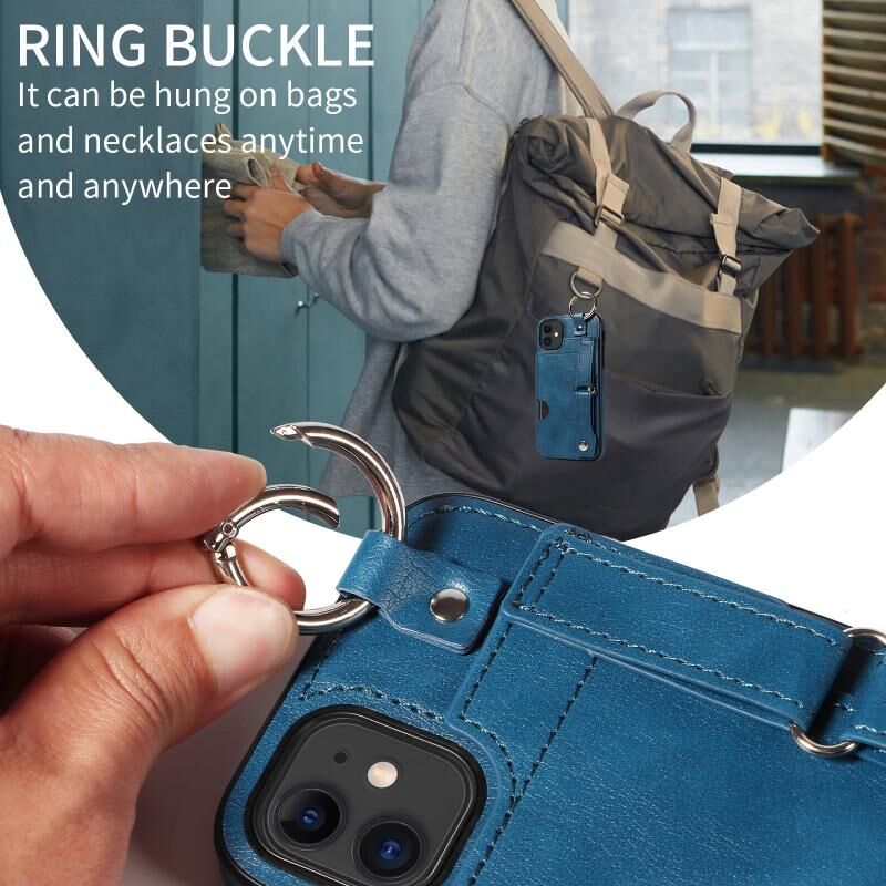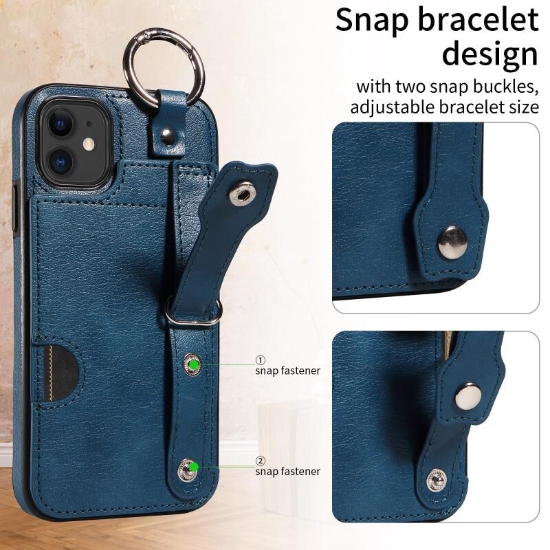For iPhone 11 Calf Texture Wrist Card Slot Ring Phone Case(Blue)