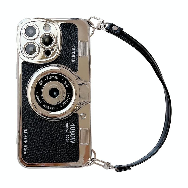 2. Electroplated retro camera style with hand strap.
