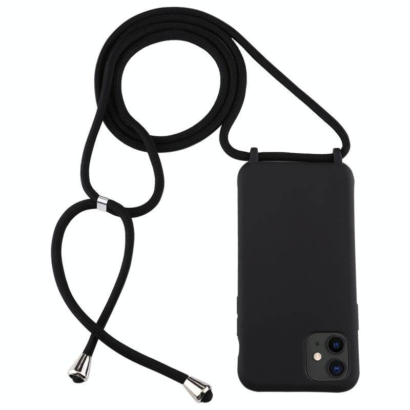 For iPhone 11 Candy Color TPU Protective Case with Lanyard(Black)