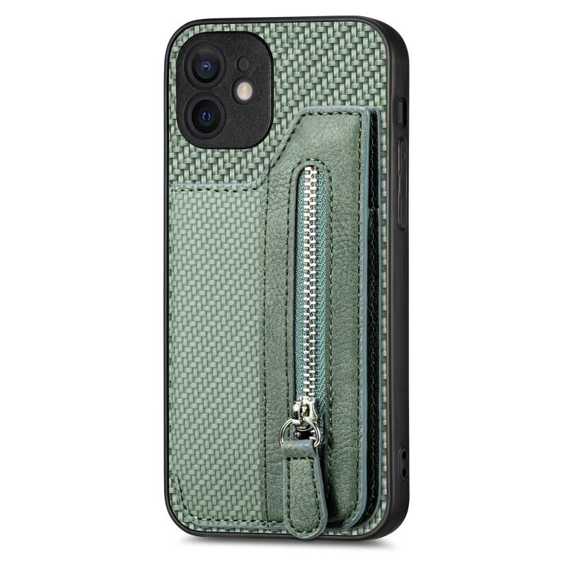For iPhone 11 Carbon Fiber Horizontal Flip Zipper Wallet Phone Case(Green)