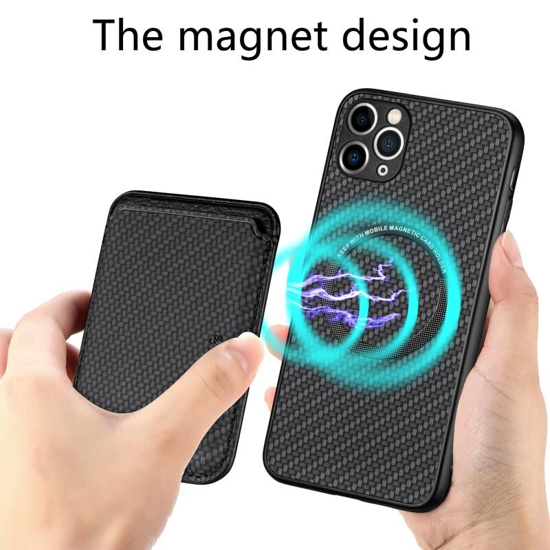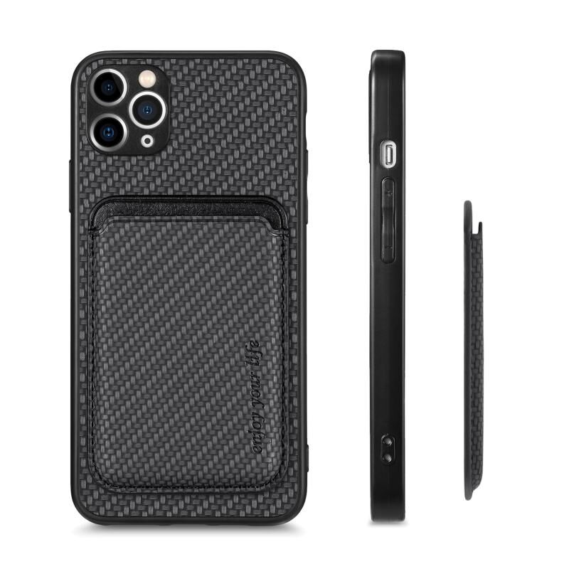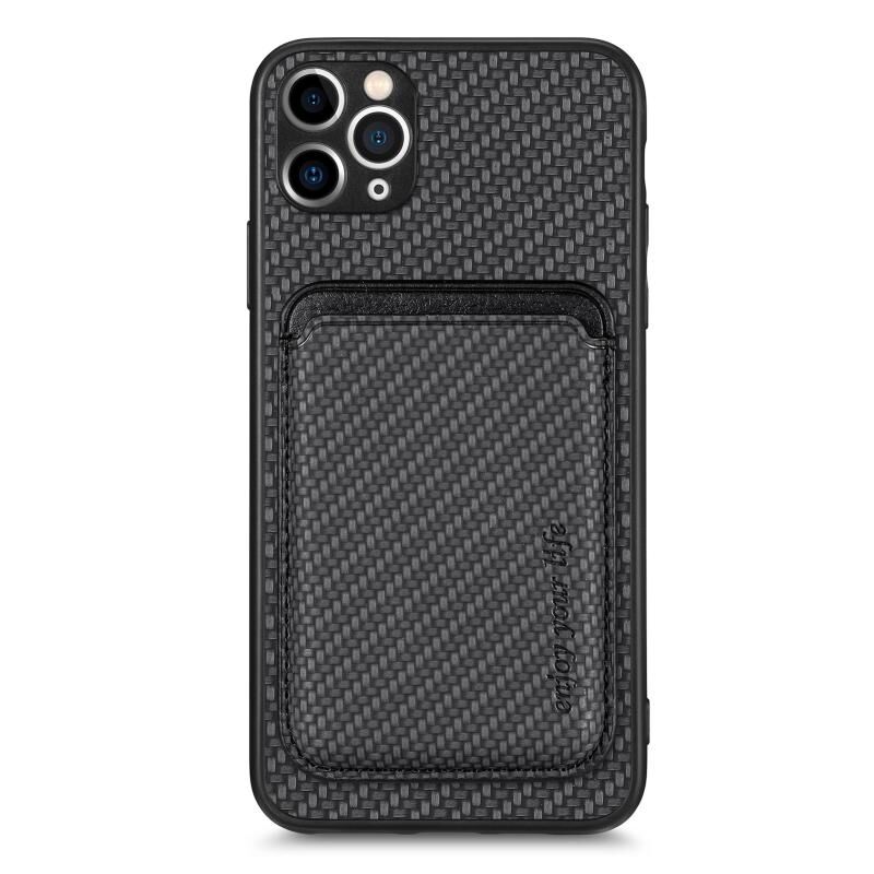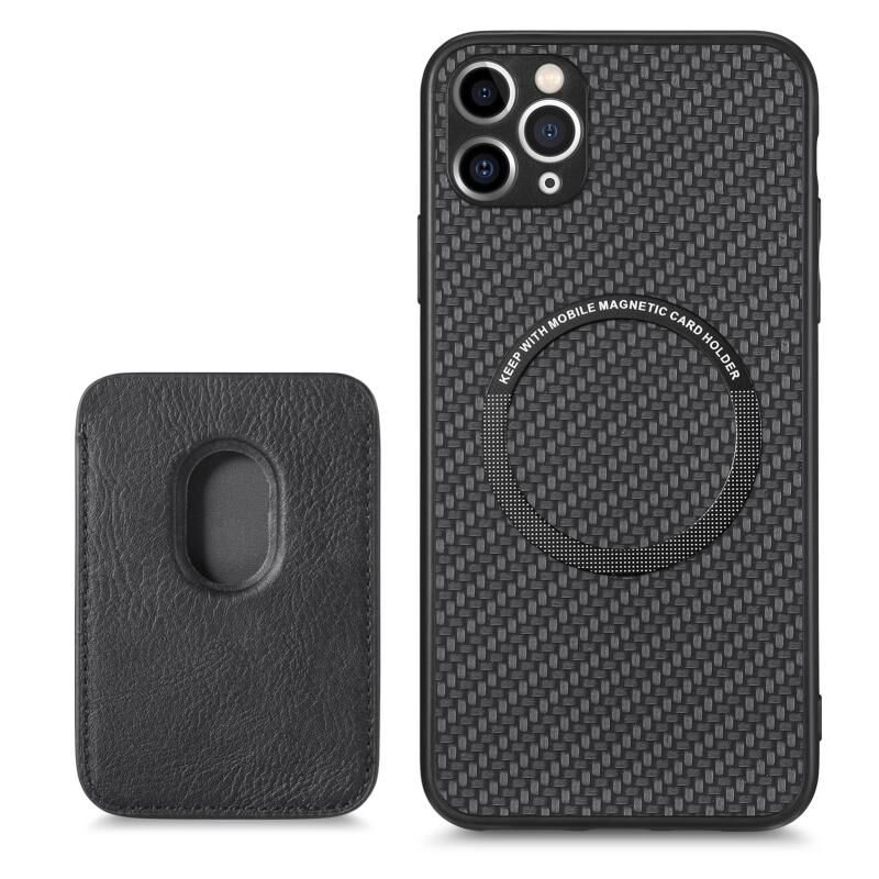 Θήκη τηλεφώνου MagSafe μαγνητική από ανθρακονήματα και δέρμα για iPhone 11 (Μαύρο)