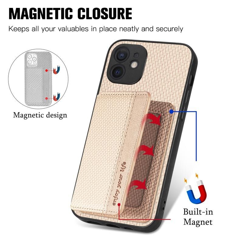 Θήκη τηλεφώνου για iPhone 11 από ανθρακονήματα με μαγνητική θήκη καρτών (Μαύρο)
