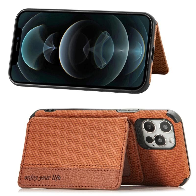 Θήκη για iPhone 11 από ανθρακονήματα με μαγνητική τσέπη για κάρτες, TPU+PU αντικραδασμική προστασία πλάτης με βάση στήριξης & θήκη για κάρτες & κορνίζα φωτογραφιών (Μαύρο)