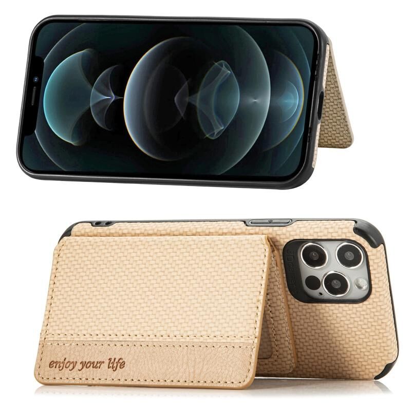 Θήκη για iPhone 11 από ανθρακονήματα με μαγνητική τσέπη για κάρτες, TPU+PU αντικραδασμική προστασία πλάτης με βάση στήριξης & θήκη για κάρτες & κορνίζα φωτογραφιών (Μαύρο)