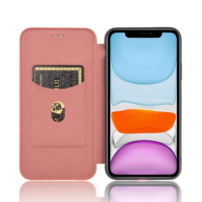 For iPhone 11 Carbon Fiber Texture Horizontal Flip TPU + PC + PU Leather Case with Card Slot(Brown)