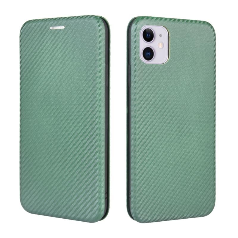 For iPhone 11 Carbon Fiber Texture Horizontal Flip TPU + PC + PU Leather Case with Card Slot(Green)