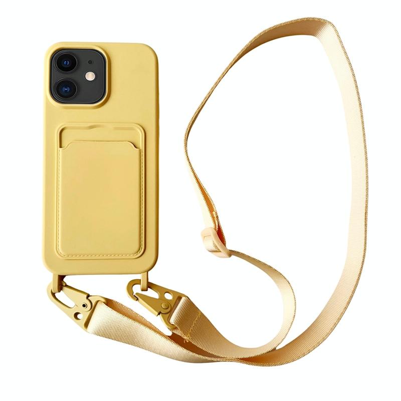 Θήκη για iPhone 11 με θήκη κάρτας, υγρή σιλικόνη με κορδόνι (Καφέ)