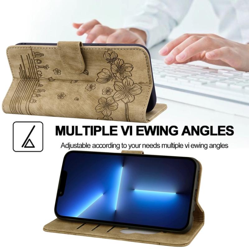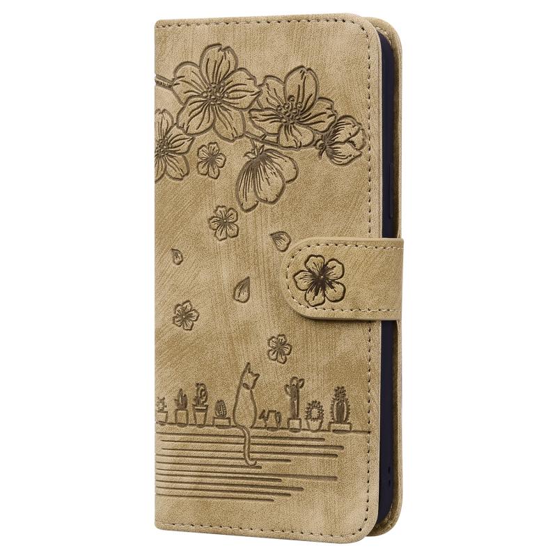 For iPhone 11 Cartoon Sakura Cat Embossed Leather Case (Brown)