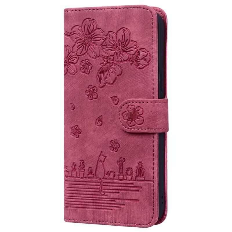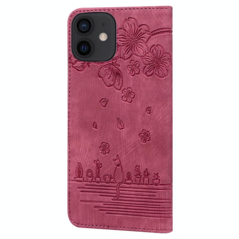 For iPhone 11 Cartoon Sakura Cat Embossed Leather Case (Wine Red)