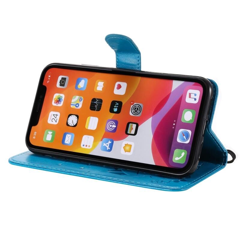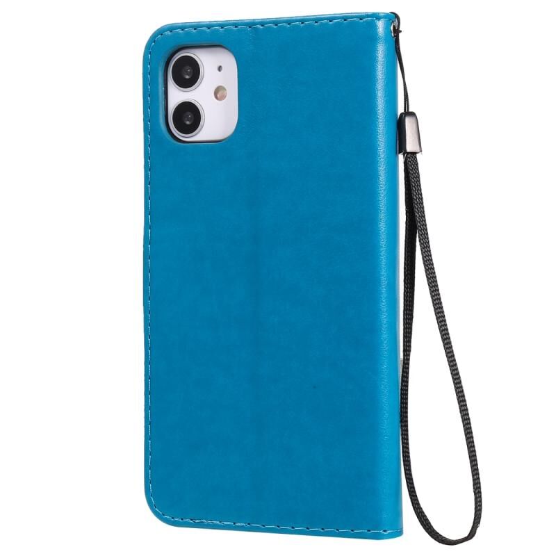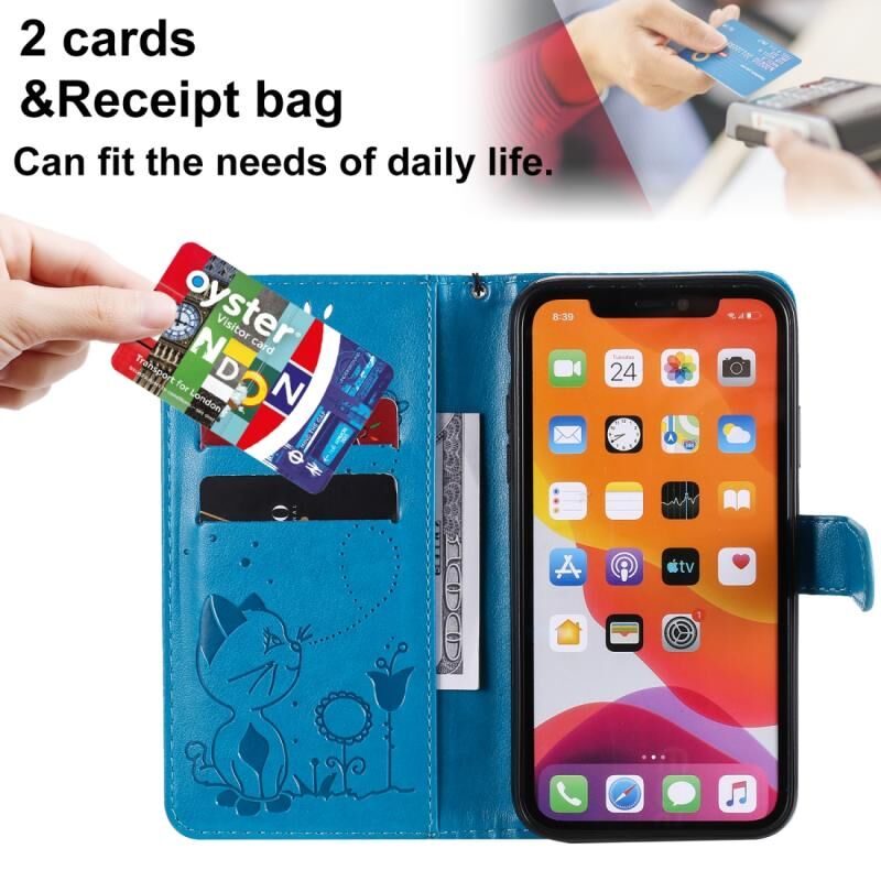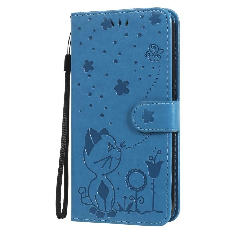 For iPhone 11 Cat Bee Embossing Pattern Shockproof Horizontal Flip Leather Case with Holder & Card Slots & Wallet(Blue)