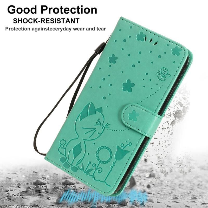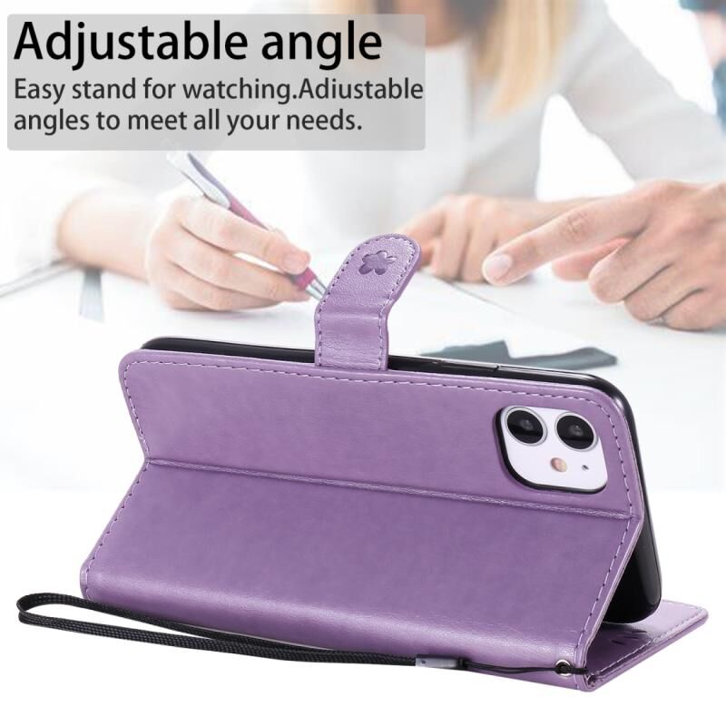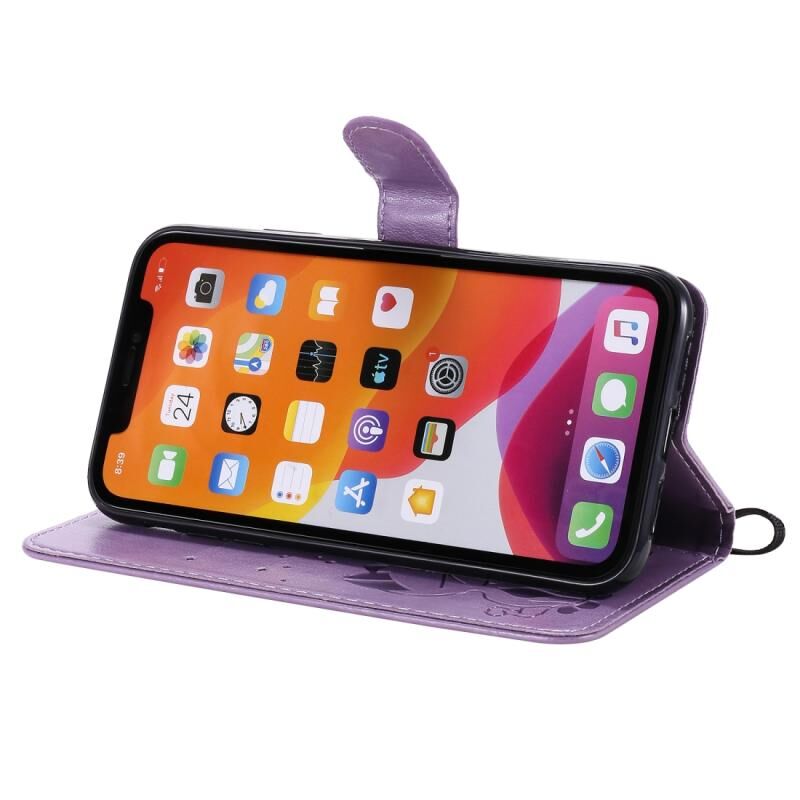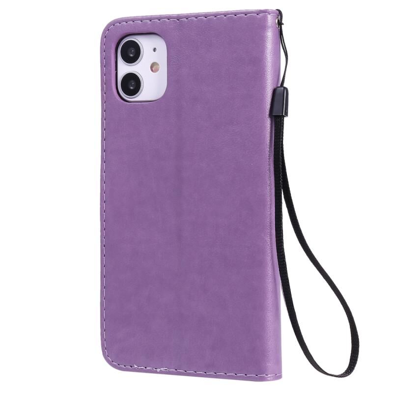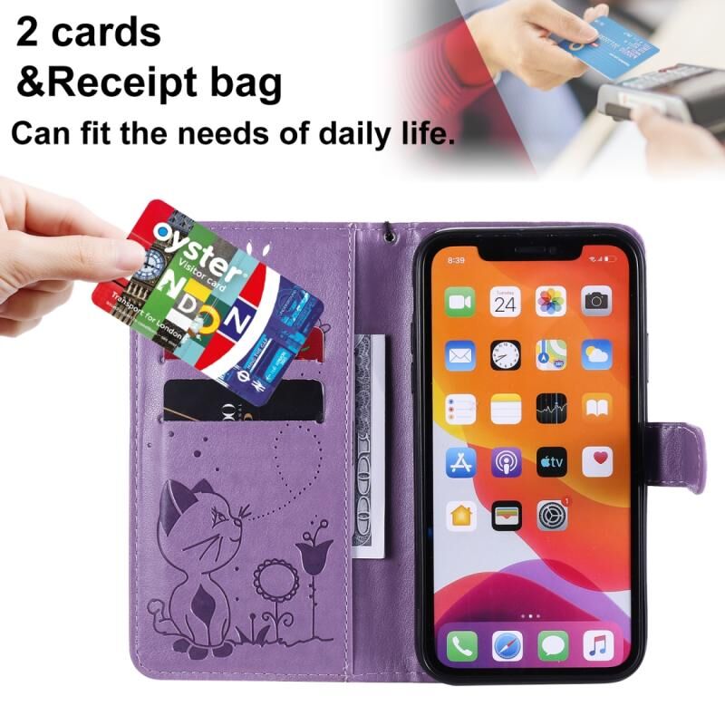 For iPhone 11 Cat Bee Embossing Pattern Shockproof Horizontal Flip Leather Case with Holder & Card Slots & Wallet(Purple)
