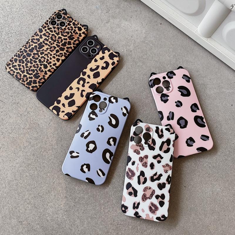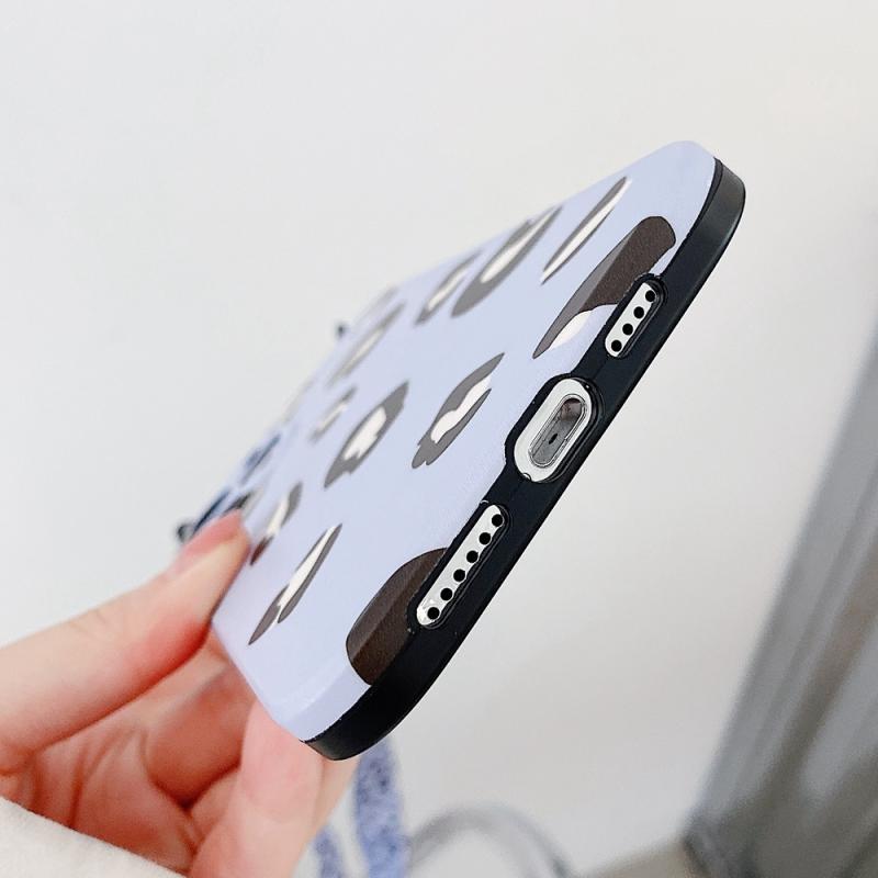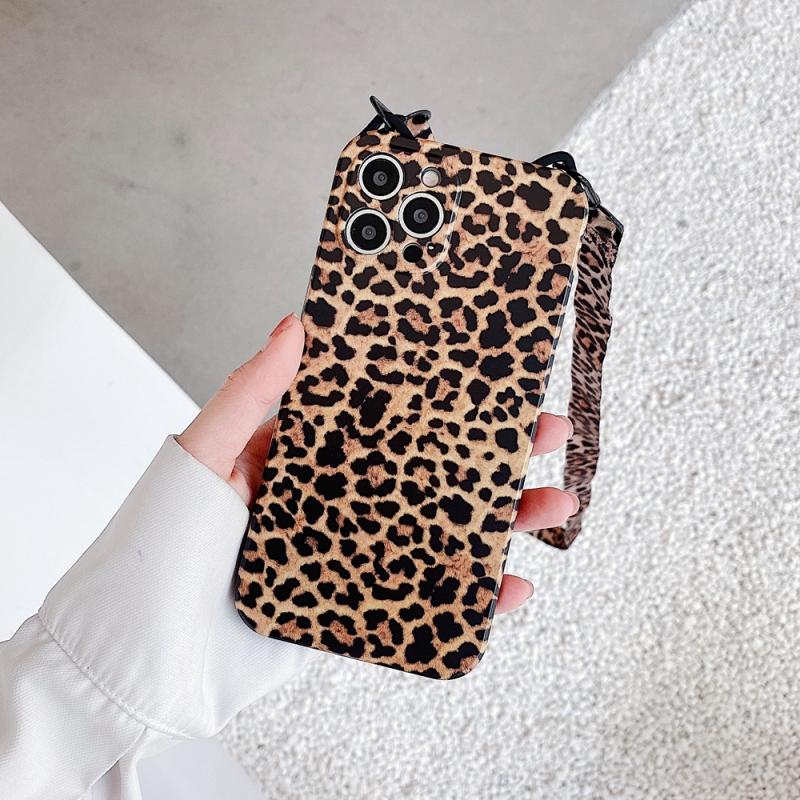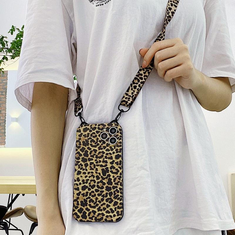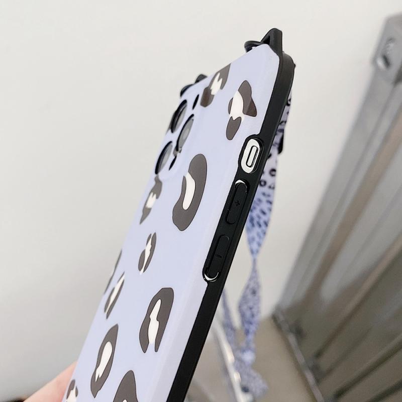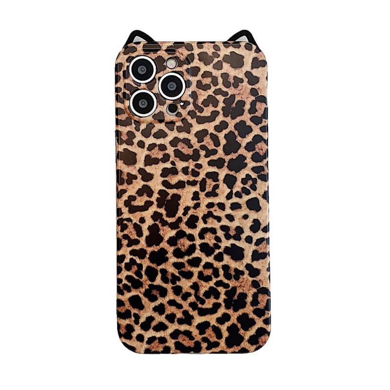 Θήκη iPhone 11 με αυτιά γάτας, μοτίβο λεοπάρδαλης και λουρί (Καφέ)