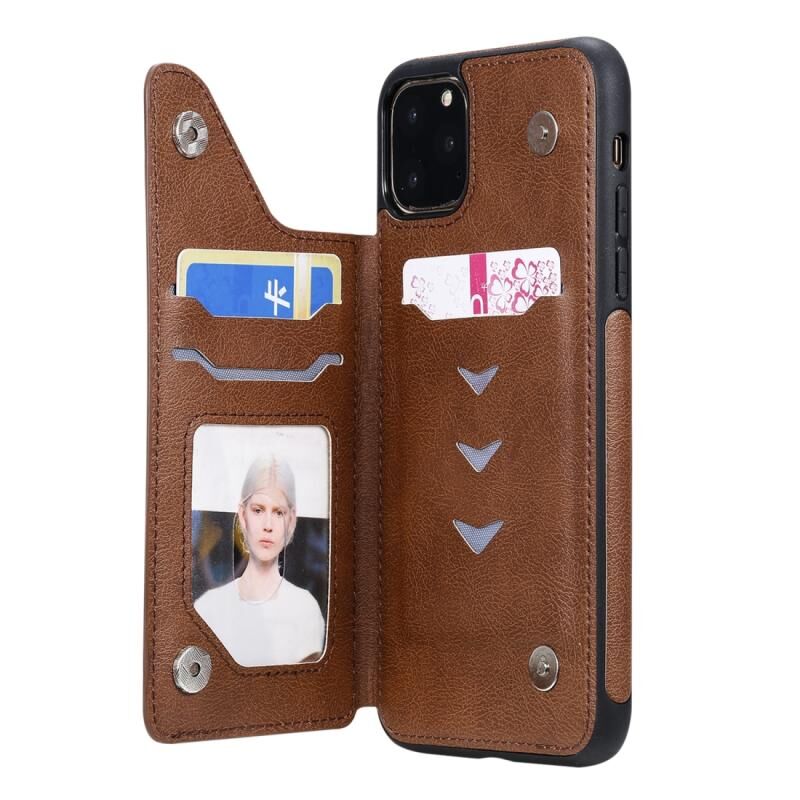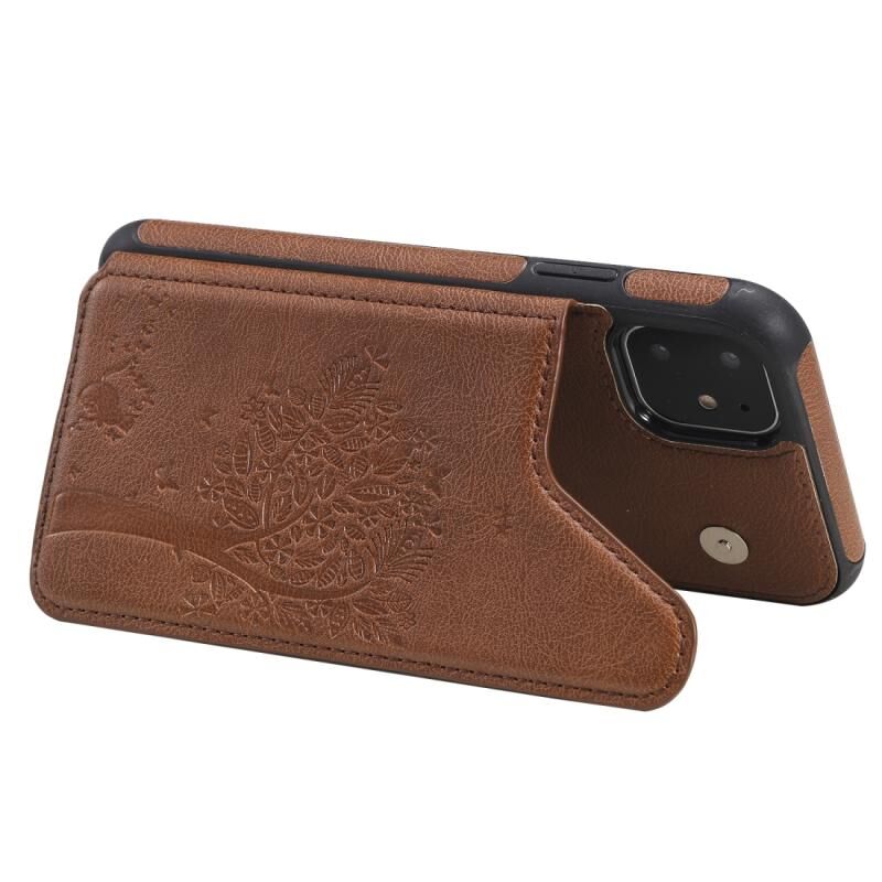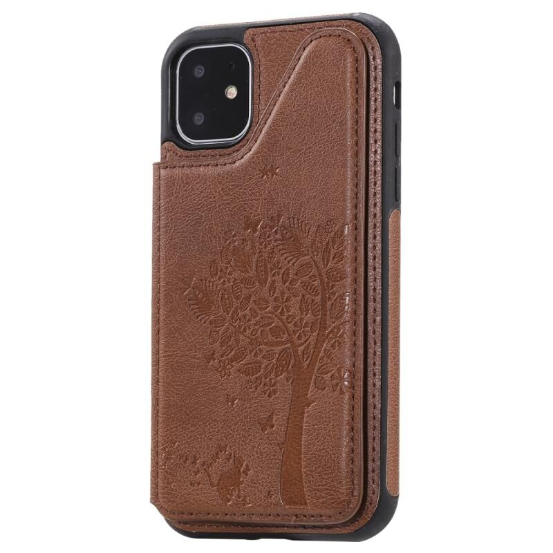 For iPhone 11 Cat Tree Embossing Pattern Shockproof Protective Case with Card Slots & Photo Frame & Holder(Brown)