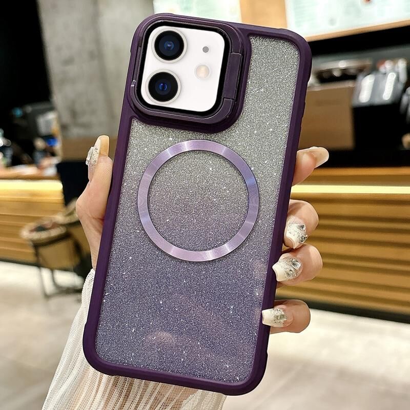 For iPhone 11 CD-grain Gradient Glitter Magsafe Acrylic Hybrid TPU Phone Case(Purple)