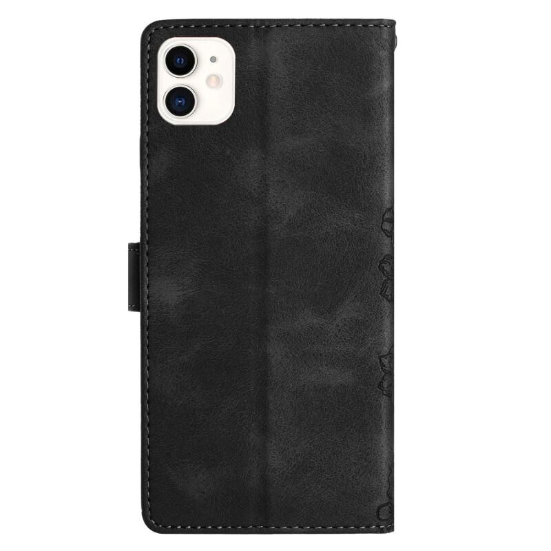 For iPhone 11 Cherry Blossom Butterfly Skin Feel Embossed PU Phone Case(Black)