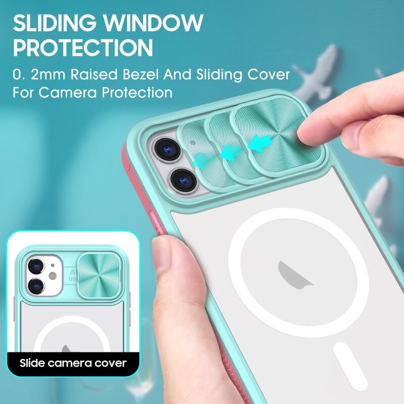 Θήκη κινητού τηλεφώνου πλήρους κάλυψης για iPhone 11 με διαφανές ακρυλικό + PC + TPU, με συρόμενο κάλυμμα φακού MagSafe (Ναυτικό Μπλε)