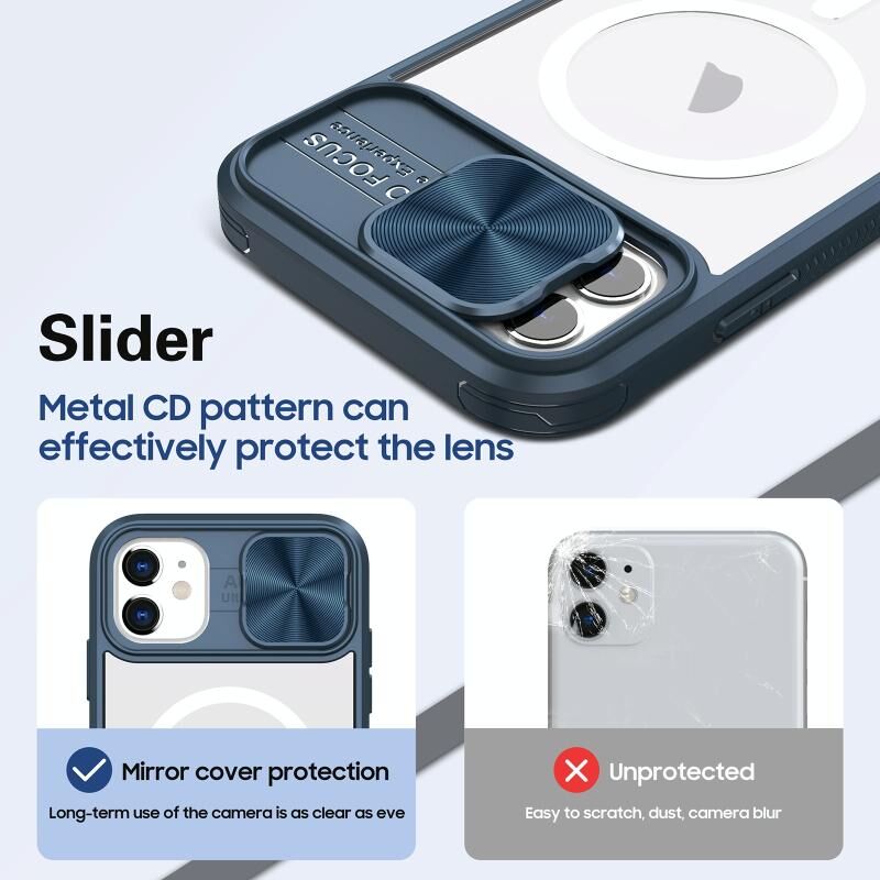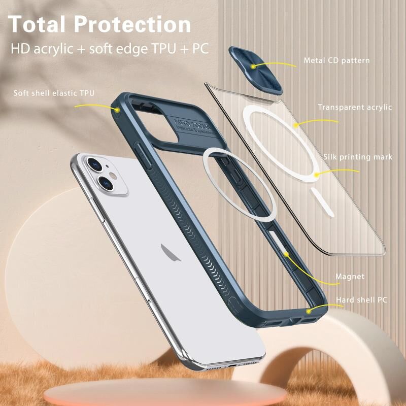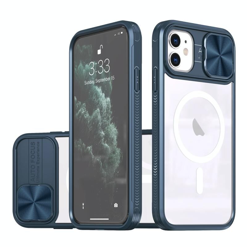 Θήκη κινητού τηλεφώνου πλήρους κάλυψης για iPhone 11 με διαφανές ακρυλικό + PC + TPU, με συρόμενο κάλυμμα φακού MagSafe (Ναυτικό Μπλε)