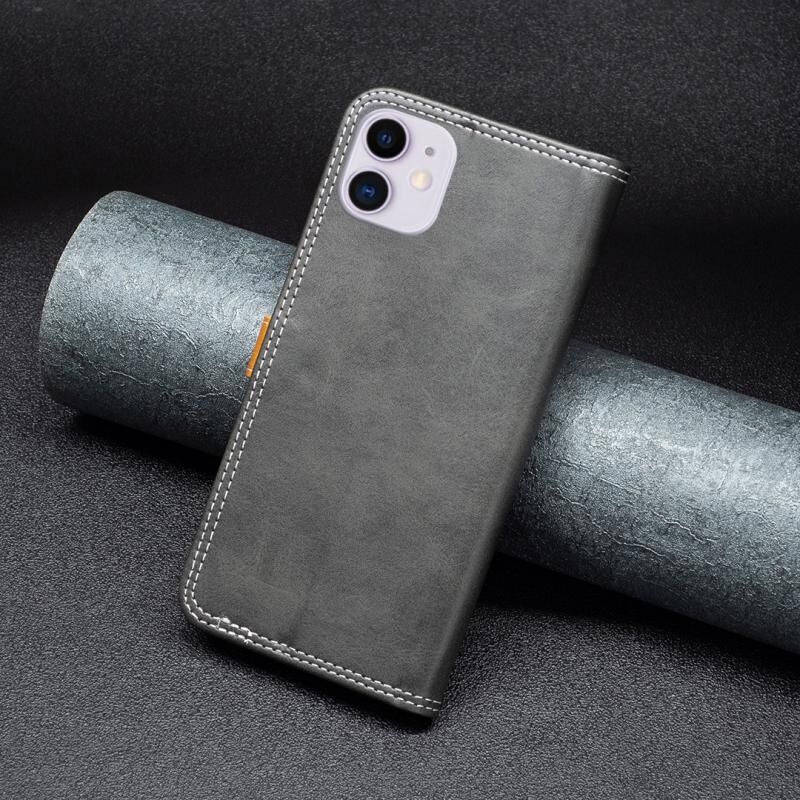 Θήκη δέρματος διπλής ραφής για iPhone 11 σε μαύρο χρώμα (Black)