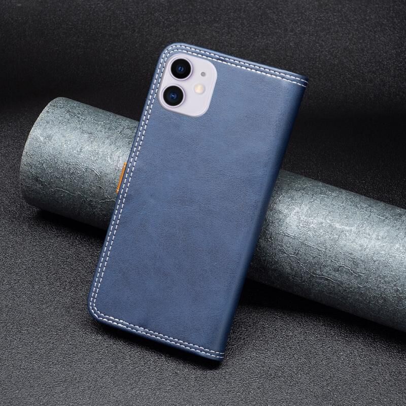 Θήκη δέρματος διπλής ραφής για iPhone 11 σε μαύρο χρώμα (Blue)