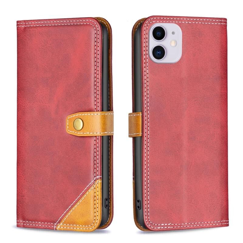Θήκη δέρματος διπλής ραφής για iPhone 11 σε μαύρο χρώμα (Red)