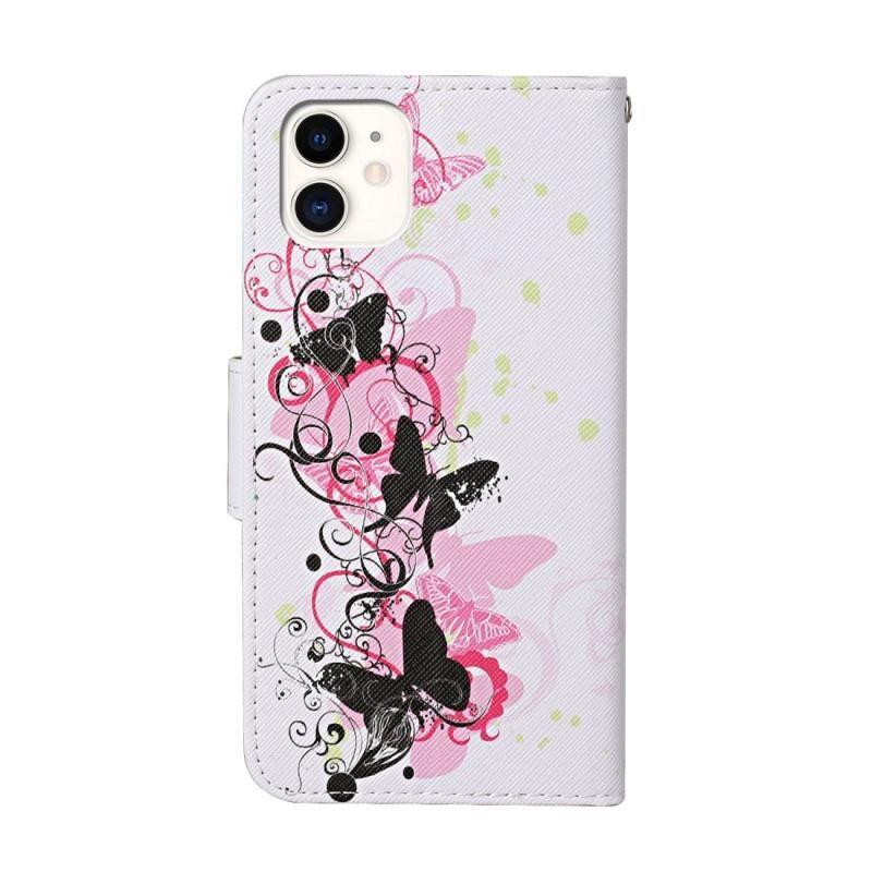 For iPhone 11 Colored Drawing Pattern Horizontal Flip Leather Case with Holder & Card Slots & Wallet(Four Butterflies)