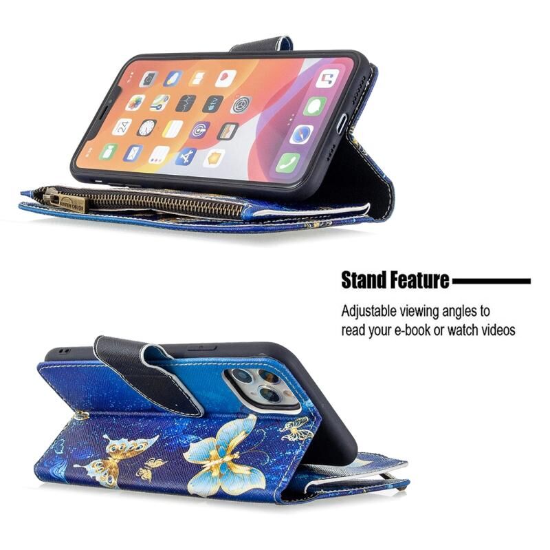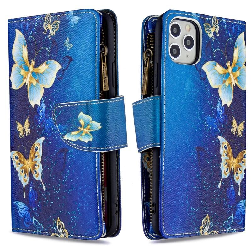 For iPhone 11 Colored Drawing Pattern Zipper Horizontal Flip Leather Case with Holder & Card Slots & Wallet(Golden Butterfly)
