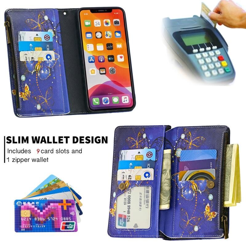 For iPhone 11 Colored Drawing Pattern Zipper Horizontal Flip Leather Case with Holder & Card Slots & Wallet(Purple Butterfly)