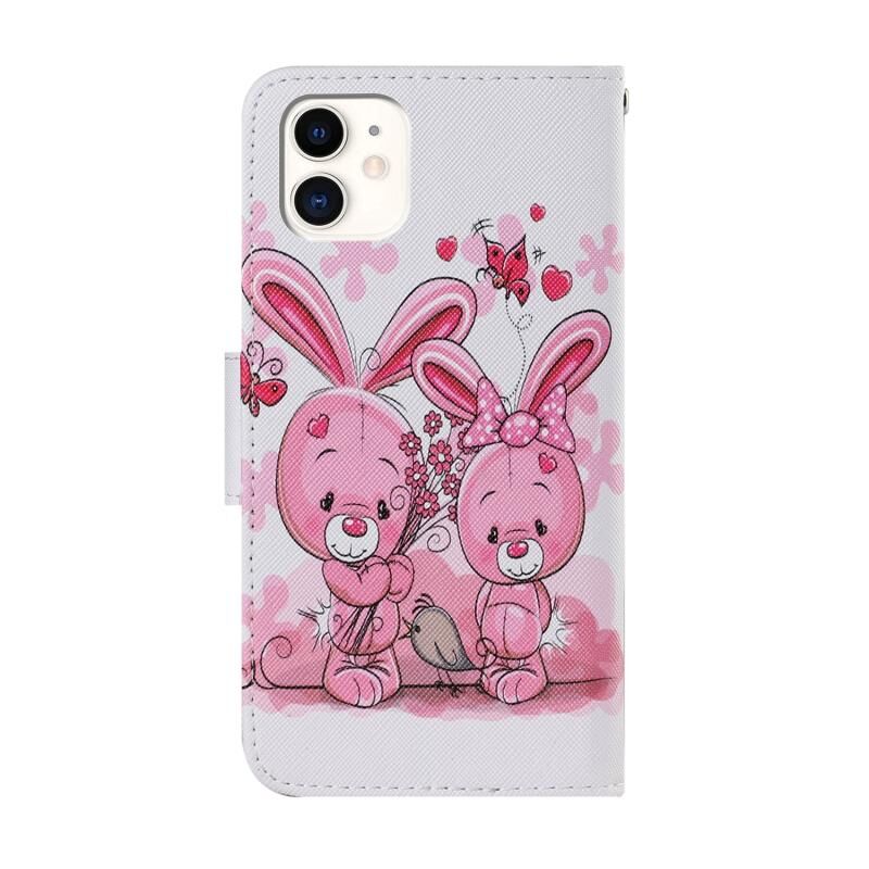 Θήκη για iPhone 11 με πολύχρωμο σχέδιο, οριζόντια αναδίπλωση από δερματίνη PU με βάση στήριξης & θήκες για κάρτες & πορτοφόλι & κορδόνι (Χαριτωτό Κουνελάκι)