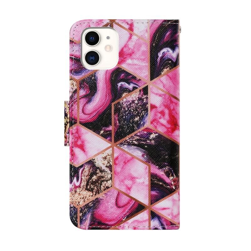 Θήκη για iPhone 11 με πολύχρωμο σχέδιο, οριζόντια αναδίπλωση από δερματίνη PU με βάση & θήκες για κάρτες & πορτοφόλι & κορδόνι (Μαύρο Μάρμαρο)