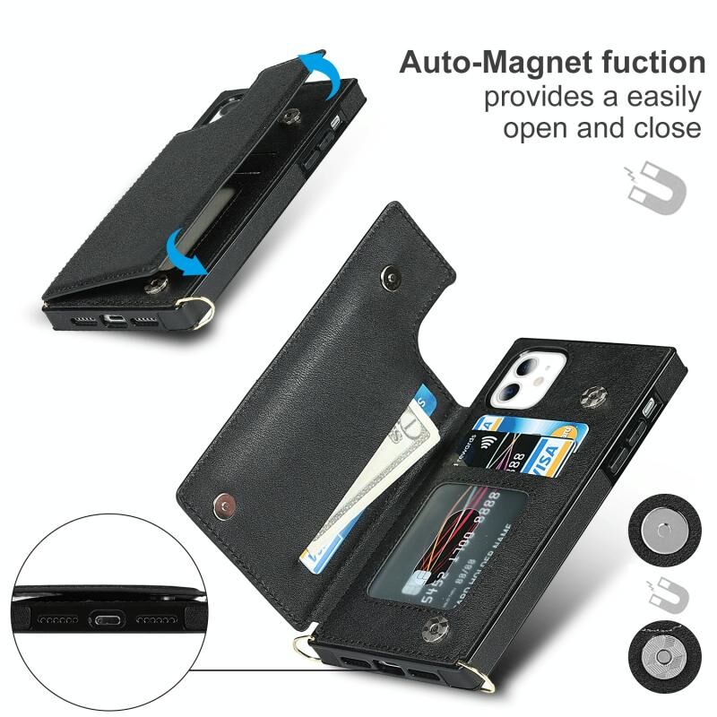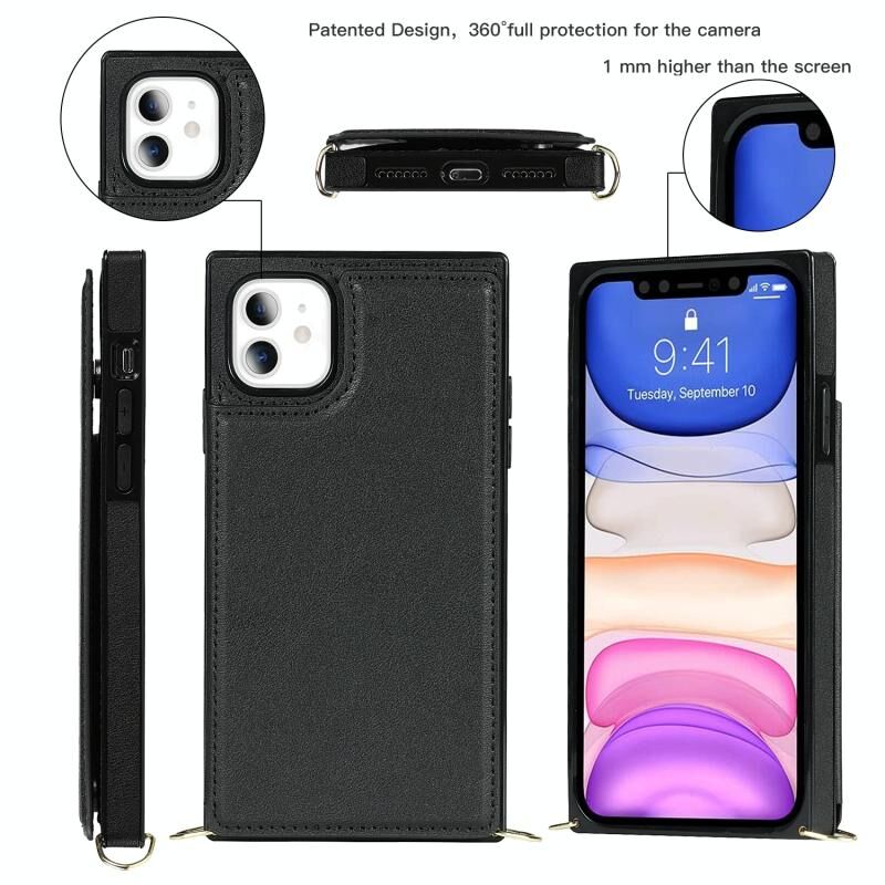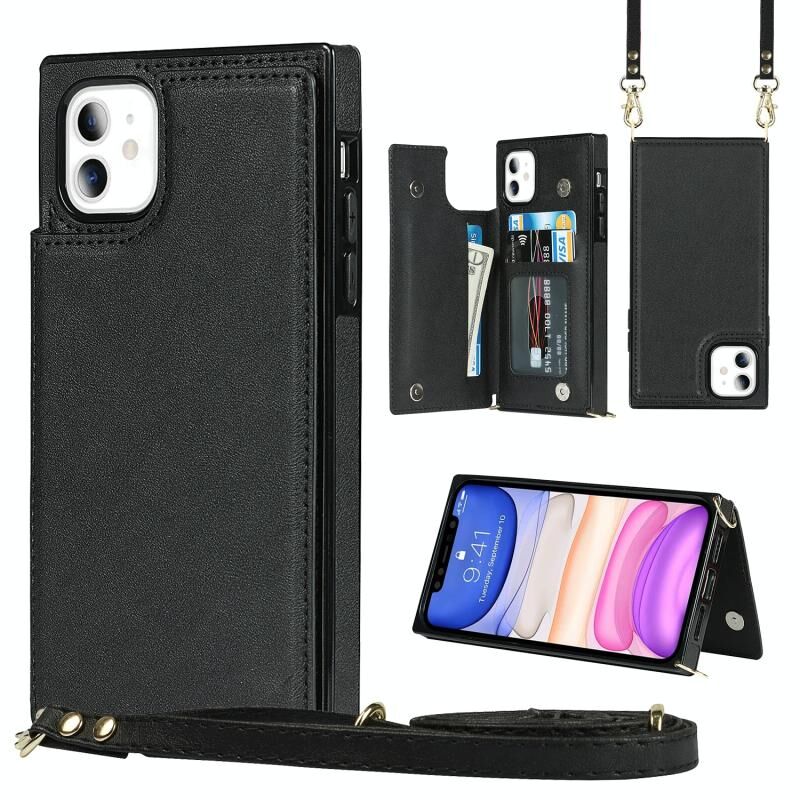 For iPhone 11 Cross-body Square Double Buckle Flip Card Bag TPU+PU Case with Card Slots & Wallet & Photo & Strap (Black)