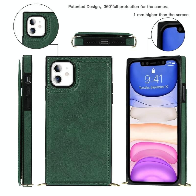 For iPhone 11 Cross-body Square Double Buckle Flip Card Bag TPU+PU Case with Card Slots & Wallet & Photo & Strap (Green)