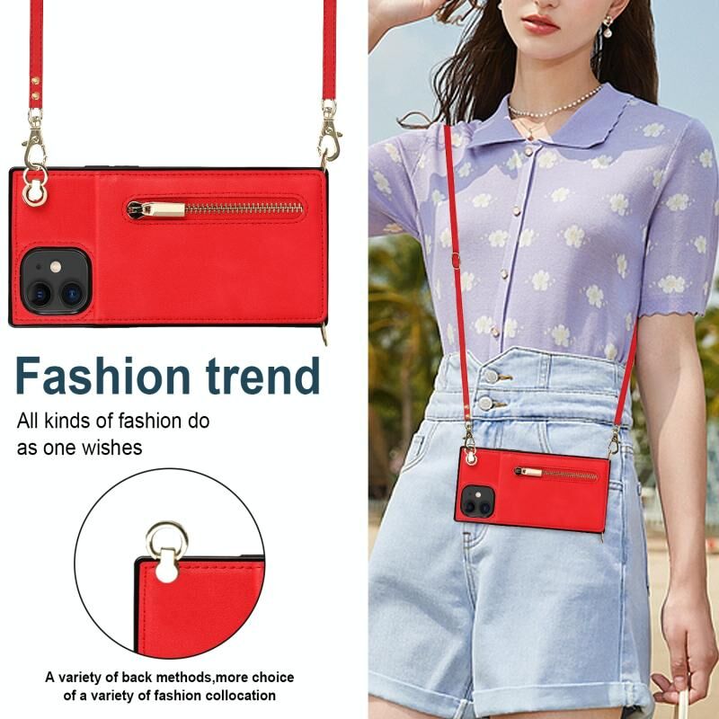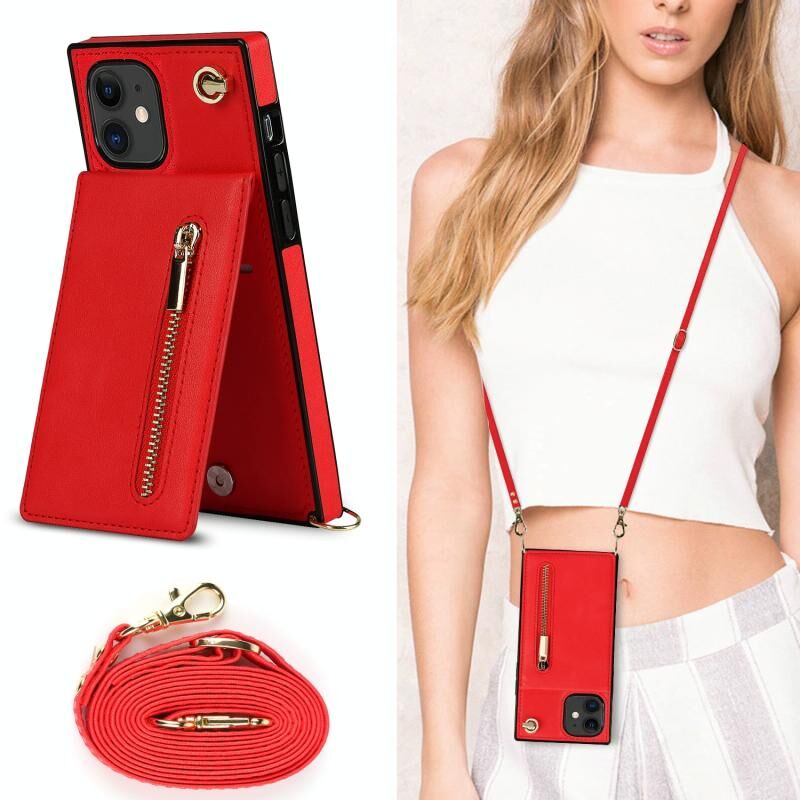 For iPhone 11 Cross-body Zipper Square TPU+PU Back Cover Case with Holder & Card Slots & Wallet & Strap (Red)