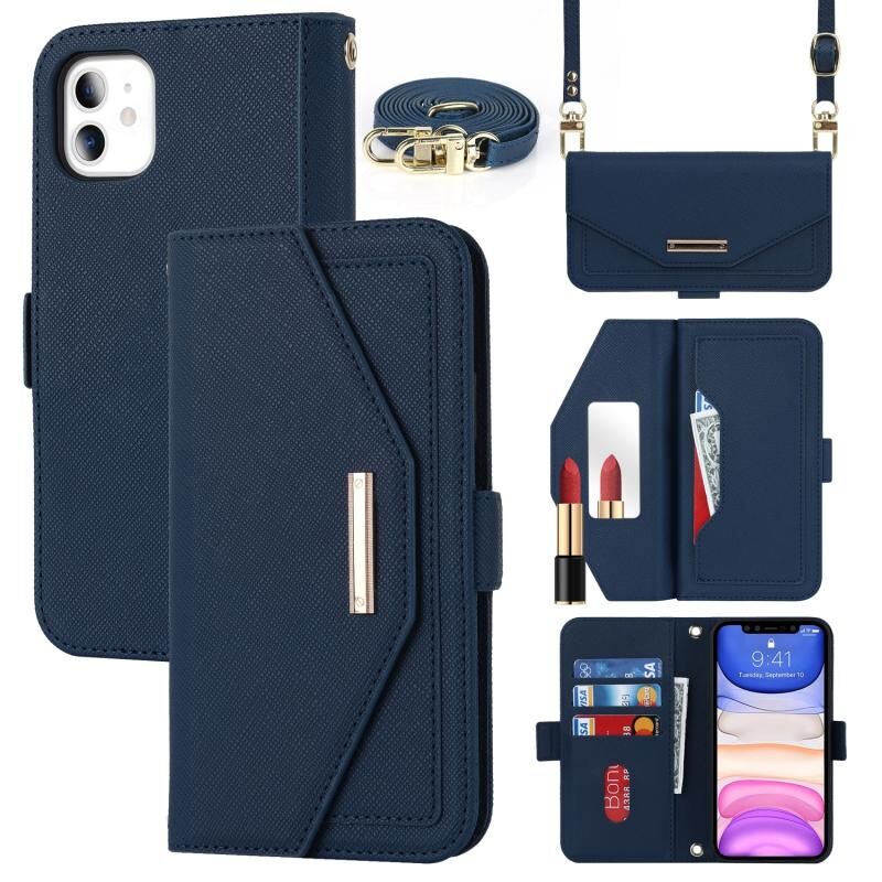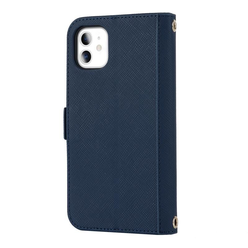Θήκη τηλεφώνου από δέρμα με κορδόνι σταυρωτής υφής για iPhone 11 (Μπλε)