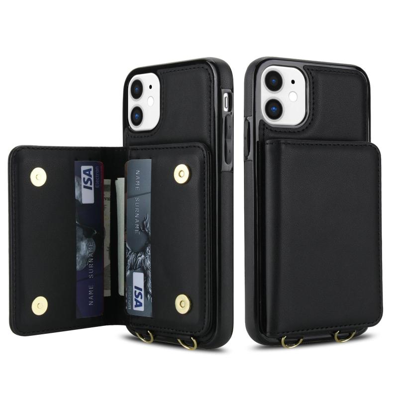 For iPhone 11 Crossbody Dual-buckle Wallet RFID Back Leather Phone Case(Black)