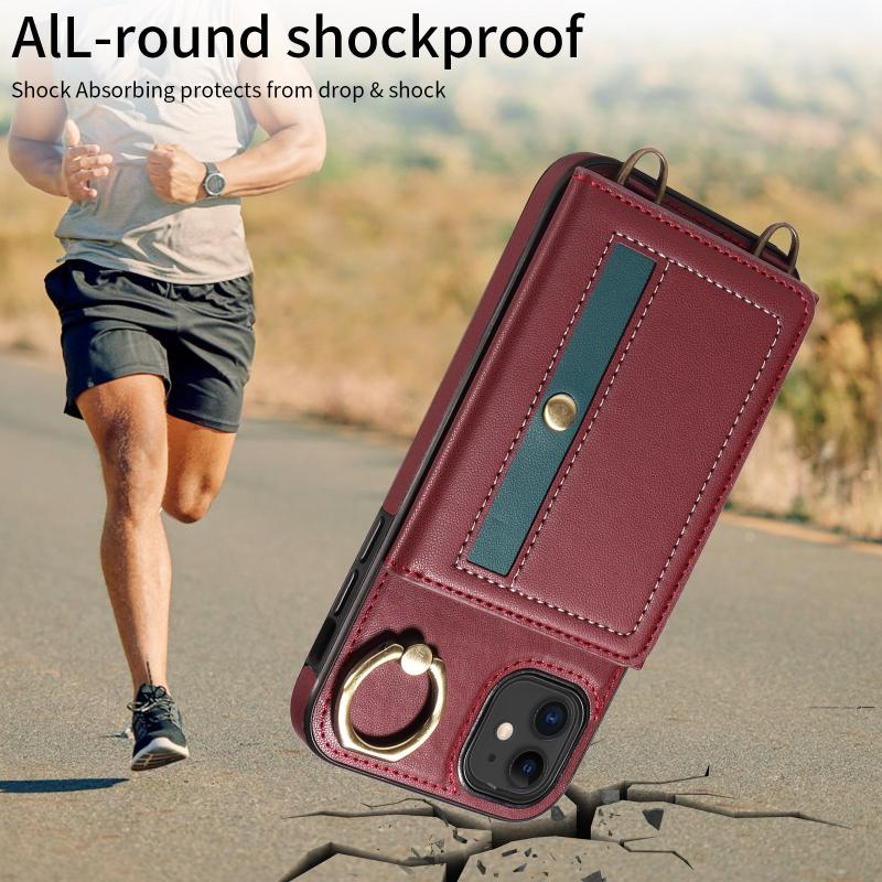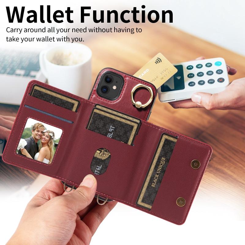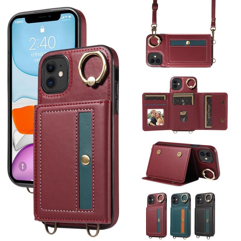 For iPhone 11 Crossbodys Card Bag Ring Holder Leather Phone Case(Red)