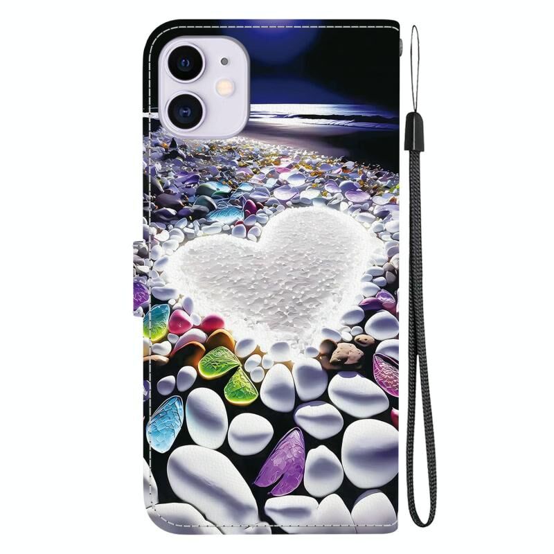 Θήκη τηλεφώνου από δέρμα με πολύχρωμο σχέδιο κρυστάλλινης υφής για iPhone 11 (σε σχήμα καρδιάς)