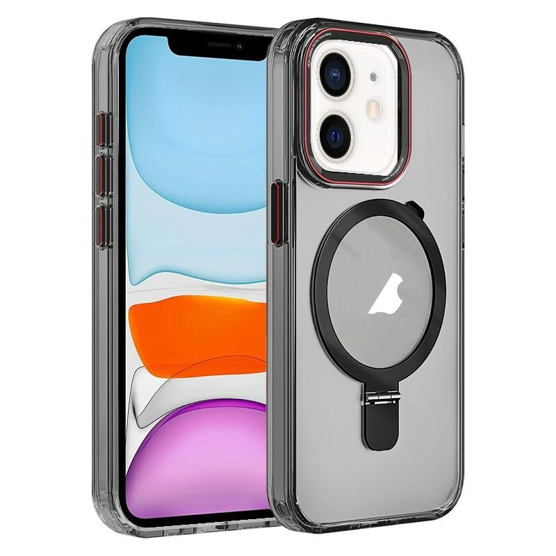 Θήκη iPhone 11 Crystal TPU Hybrid PC με MagSafe Holder (Διαφανές Μαύρο)